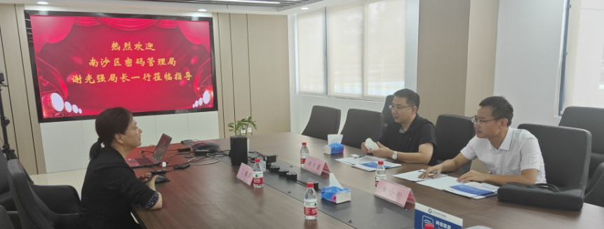 2024年7月19日,广州市南沙区密码管理局局长谢光强一行深入广东中科实数科技有限公司进行调研指导,与公司董事长丁丽萍及技术团队领导共同探讨网络安全、数据安全、密码应用安全与南沙区科技与经济发展等。