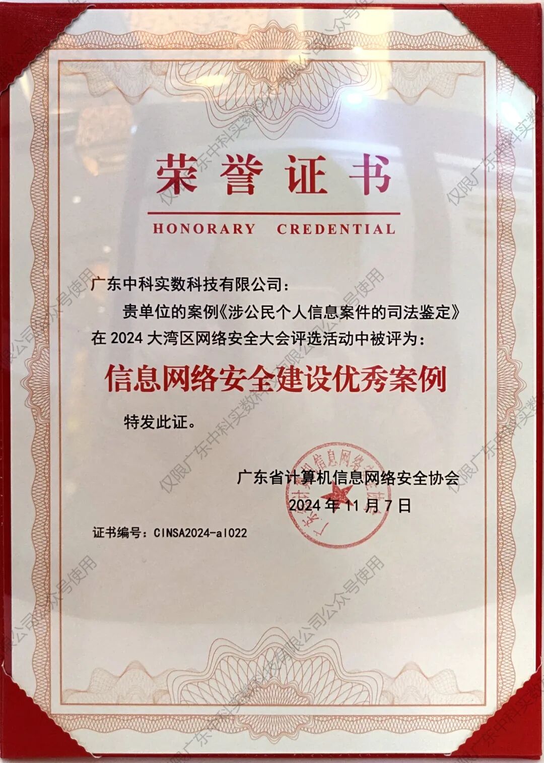 中科实数凭借其在信息网络安全建设领域的卓越贡献和深厚实力,赢得了市场的广泛认可和赞誉,荣获了优秀案例大奖。