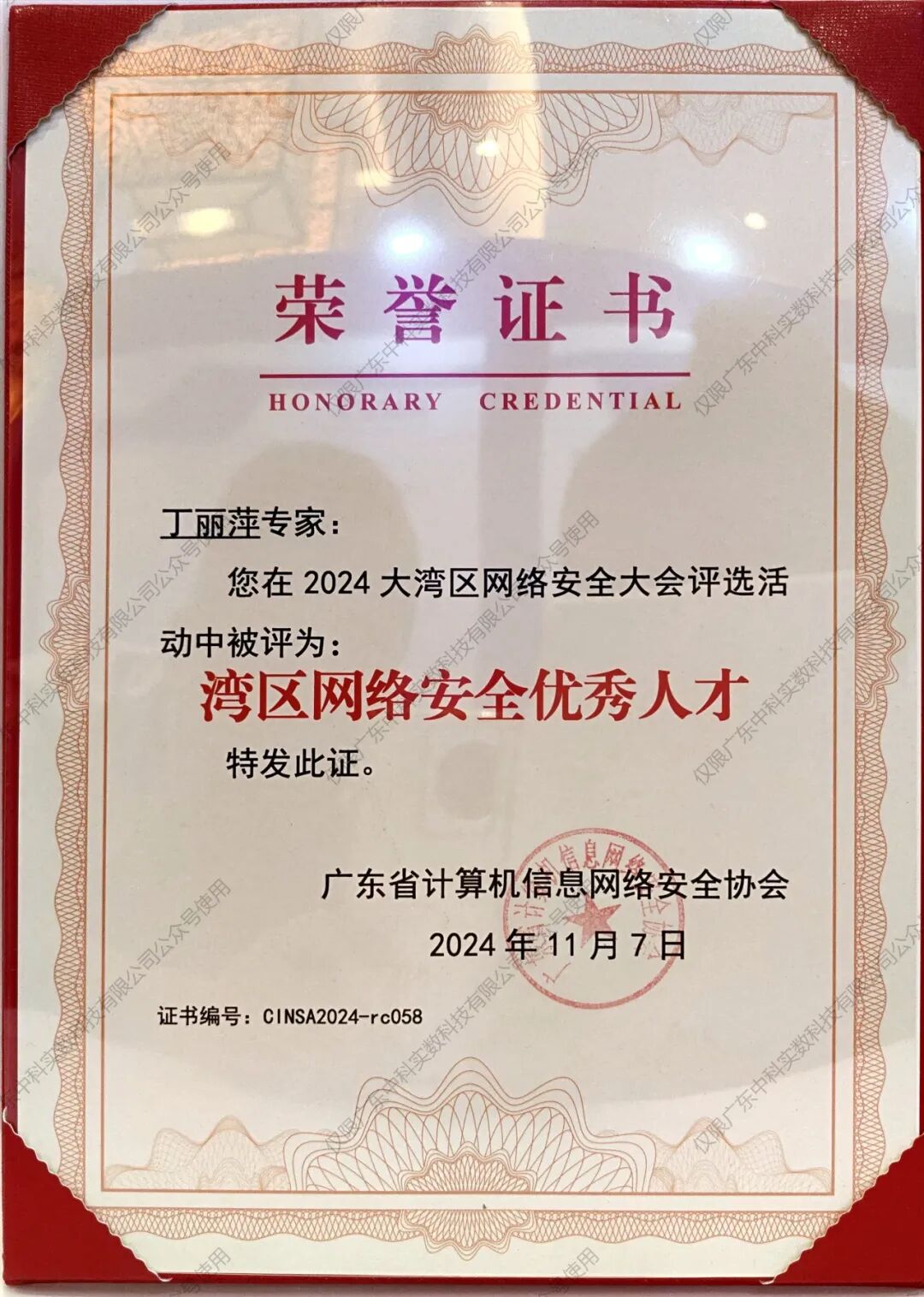 同时公司董事长兼总经理丁丽萍老师和公司技术实施中心总经理朱思霖,凭借他们在网络安全领域的杰出表现,均荣获了湾区网络安全优秀人才奖。