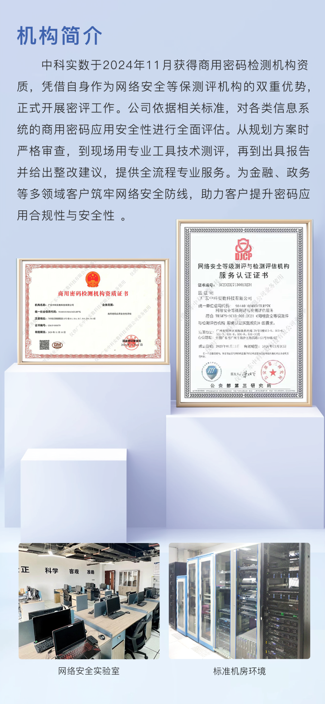 中科实数目前是国家级高新技术企业,具有网络安全等级保护测评、商用密码应用安全性评估、司法鉴定、CCRC等多项服务资质,拥有专利10余项,软件著作权100余项。公司始终秉承“让正义不再迟到”的愿景,将“用创新保障安全”作为自己的使命,坚持技术创新、应用创新和客户至上的理念,全力推动网络安全和电子数据取证事业的繁荣发展。