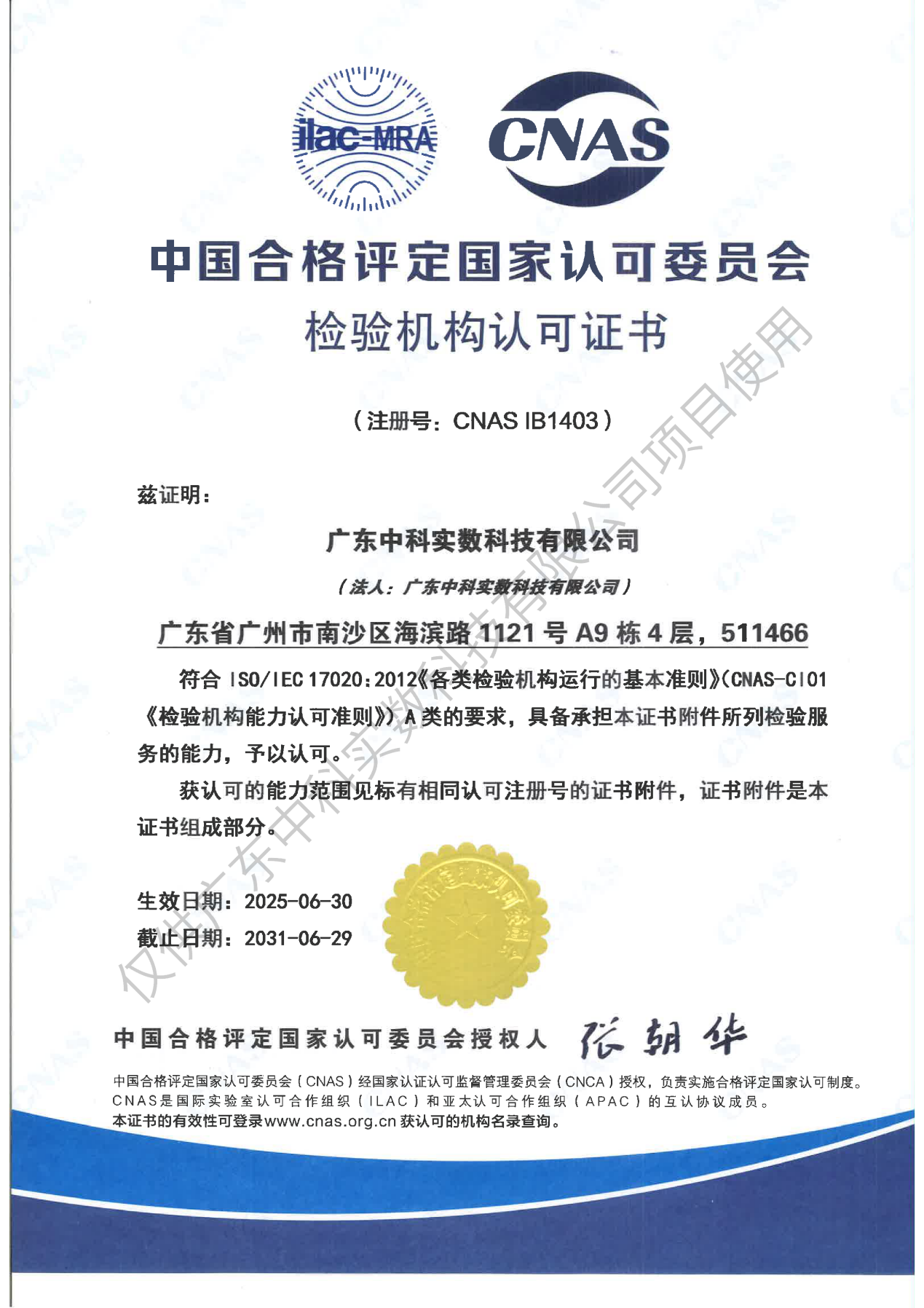 经过大半年的努力,广东中科实数科技有限公司通过了中国合格评定国家认可委员会(CNAS)的认证,并获得了检验机构认可证书,这不仅是技术能力的注脚,更是代表着中科实数集团在质量管理体系、软硬件设施、管理水平和检测技术能力等方面达到了国际认可水准。