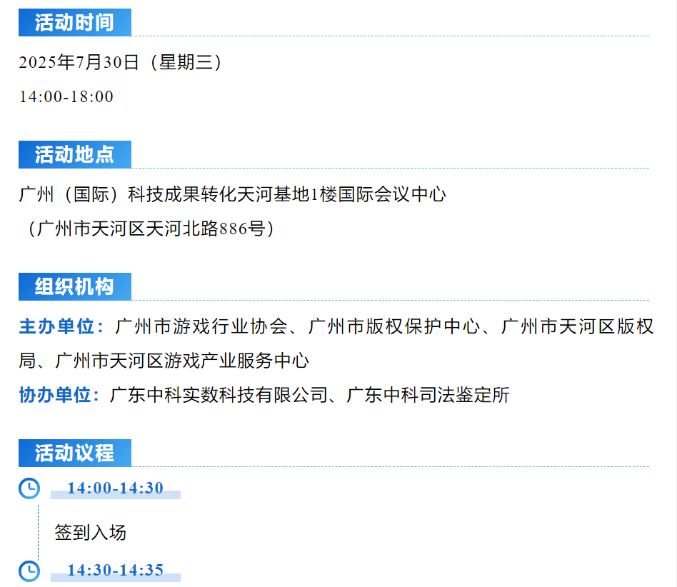 【活动预告】多方协同,智慧治理!游戏私服与外挂的全链条治理研讨会暨天河游戏版权共建站成立仪式活动报名开启→