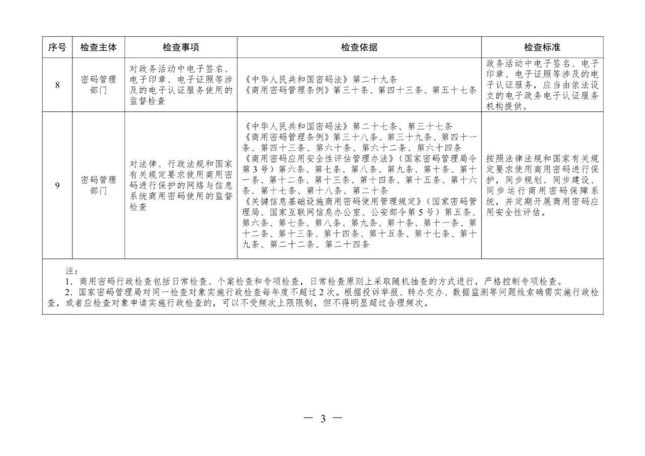 国家密码管理局关于发布《国家密码管理局商用密码行政检查事项清单》的公告